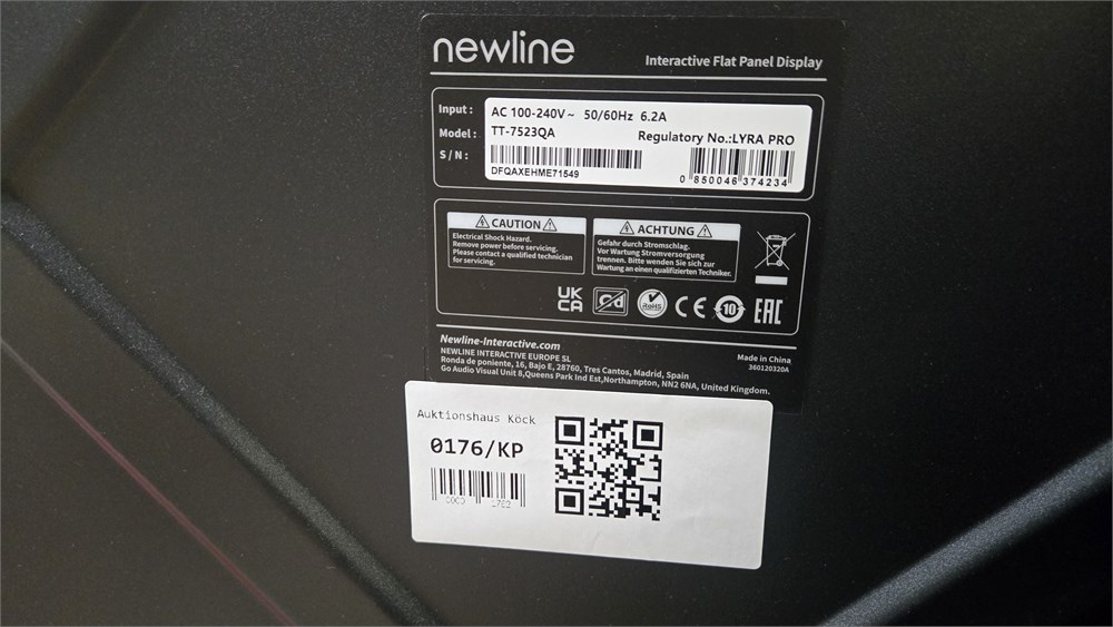 Newline TT-7523QA Interactive Board - ID: 176-VFT