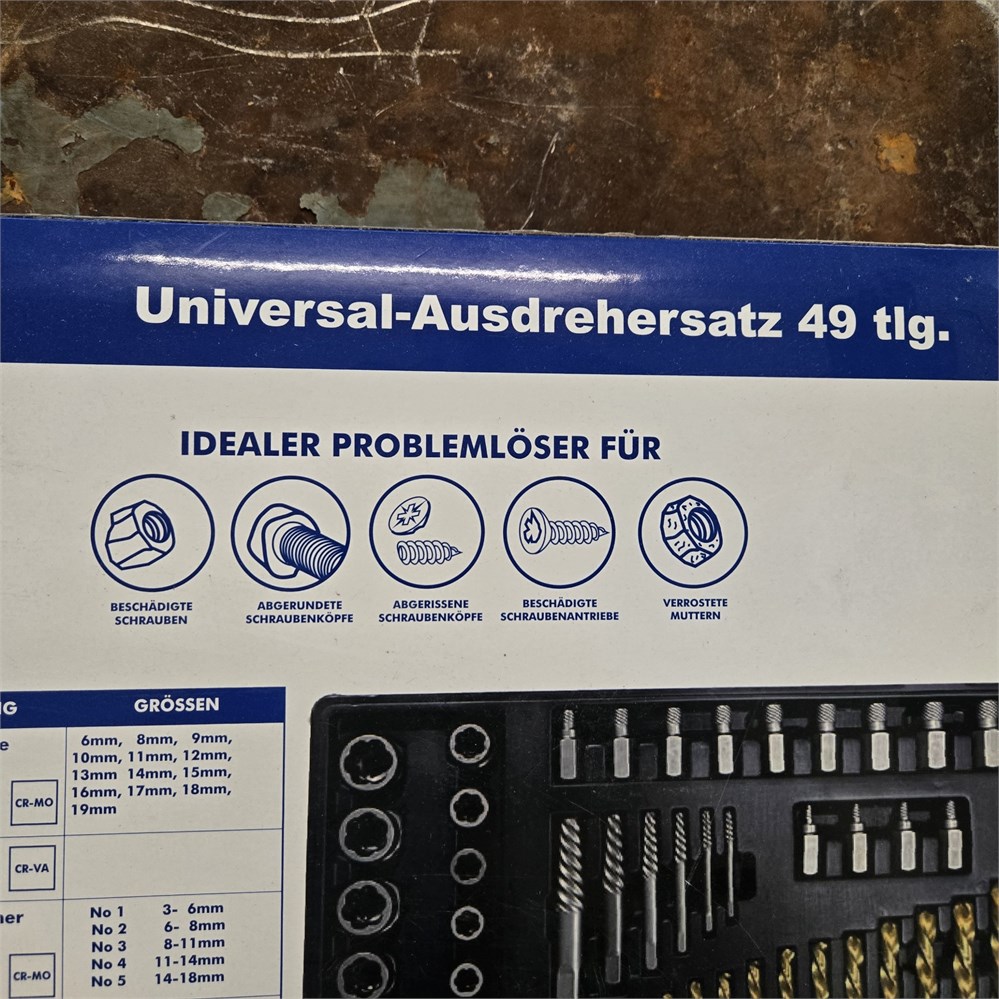 - 13 Ausdreherbits: 3mm, 4mm, 5mm, 5.5mm, 6mm, 7mm, 8mm, 9mm, 9.5mm, 10mm, 11mm, 12mm, 13mm CR-MO