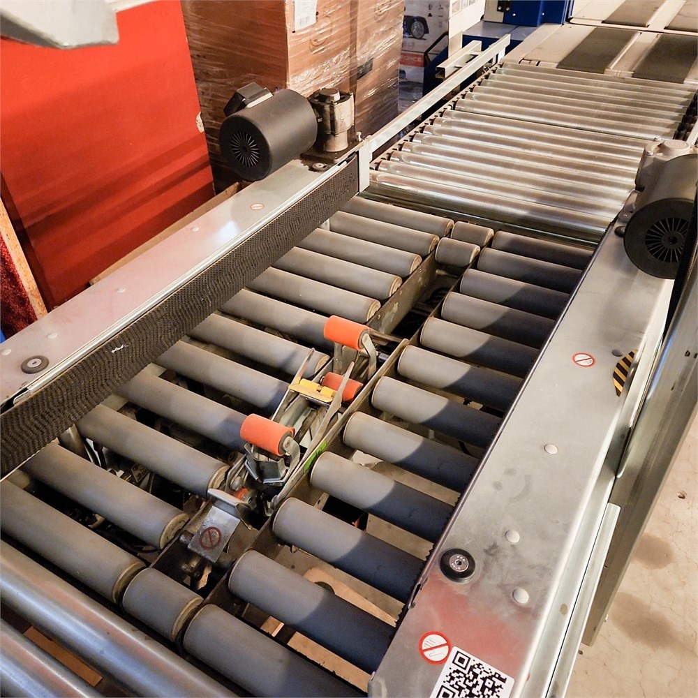 Voll funktionsfähiger SOCO System T-55 Maxi Kartonverschließer – die bewährte dänische Lösung für professionelle Verpackungslinien mit automatischer Formateinstellung. Bis zu 30 Pakete/min.